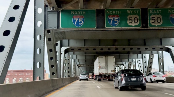 In contrast, crossing the Ohio River, we saw plenty of signage. Yup, north on I-75, that was us—and we’ll motor more tomorrow to the usual location near the northern end of this interstate.