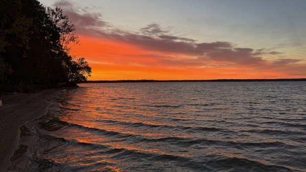I caught the gorgeous sky-colors that preceded the actual sunrise…just stunning, with a lovely audio touch from the wavelet susurrations.