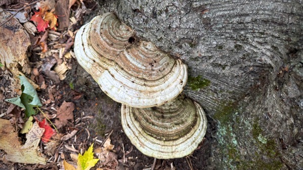 Later, I wandered the woods and found these exceptional specimens of shelf fungus (which, as a child, I heard as shell fungus, thinking I suspect of the shells like on the gas signs, which roughly match the shape, but I’ve mentioned this before—lemme run-on a tad…).