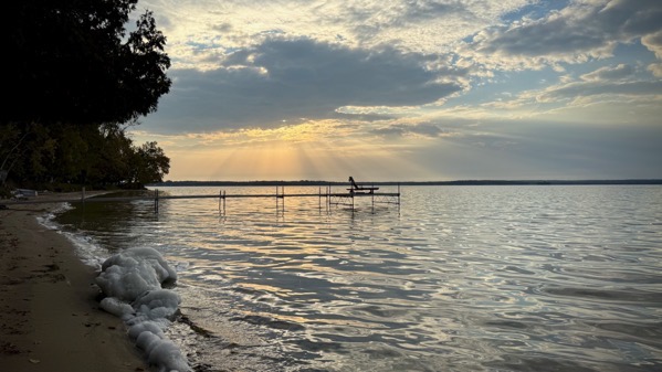 With the sun already up, I chose the long view, from way down the beach, past the dock.