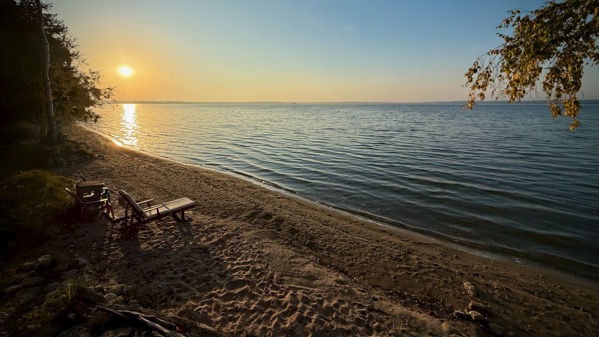 I went down for the (just after) sunrise, and, whoohoo, it’s a new world—the dock is stashed for the winter…which is unarguable evidence that we are well into autumn.