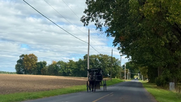 Our trajectory took us through the “heart of Amish country,” Shipshewana, Indiana. Hence: buggies and many farms with paddocks of horses. We even saw a four-horse team on the road, but pulling no farm equipment, only the driver’s platform with an empty hitch-bar.