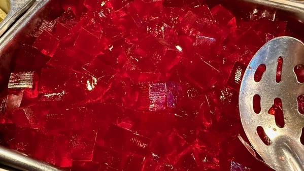 We decided on a buffet dinner (a vast improvment over Arbys and the like). The offerings of course included red jello. [Not sampled.]