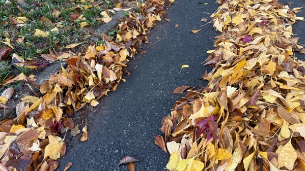I saw this rain-shower aftermath and thought: ginkgo dry wash. Still think that (even though other leaves are mixed in).