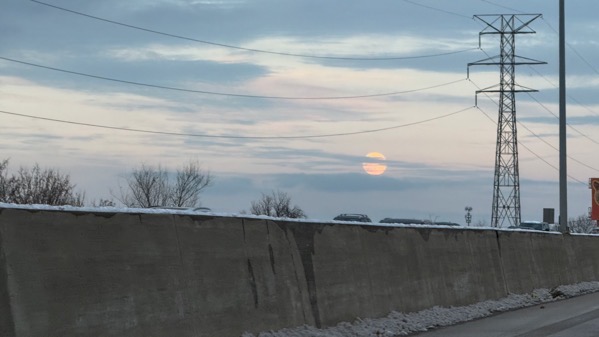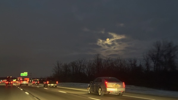 And, by the time we got to the outer Cincinnati suburbs: demurely hiding moon. If anthropomorphizing is permitted.