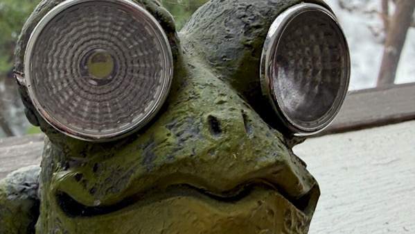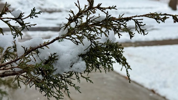 It started snowing sometime when it was still dark, big lazy flakes, and kept it up almost until noon. In the background, you can tell our host was busy with the snowblower, cleaning sidewalks and driveway. And a parking spot by the curb for us. Thoughtful man.