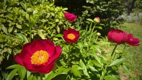 Just one day later, and, whew, the peonies are open! That red is stunning.