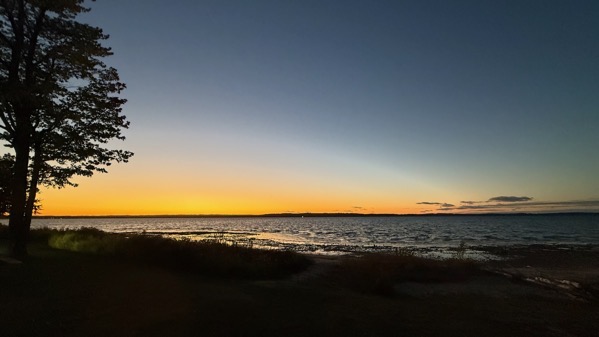 Proof we got off the property: this is looking across the inner arc of the East Arm of Grand Traverse Bay.