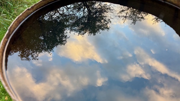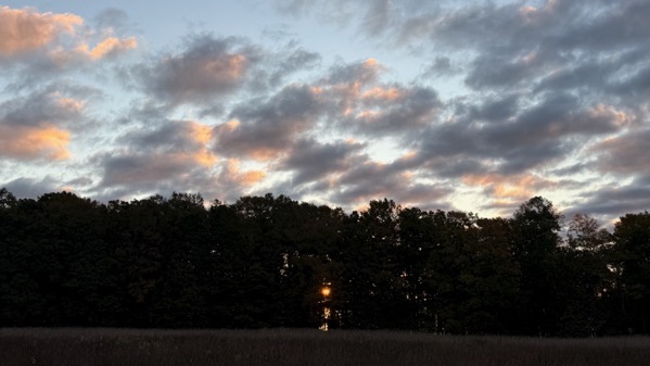 Today, I observed the almost-sunrise from the cottage—through the trees. I thought the cloud-sky art exceptional.
