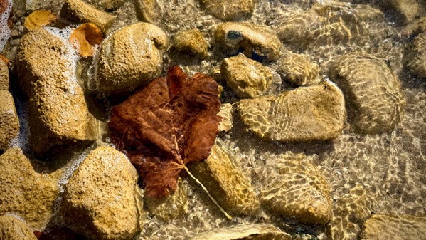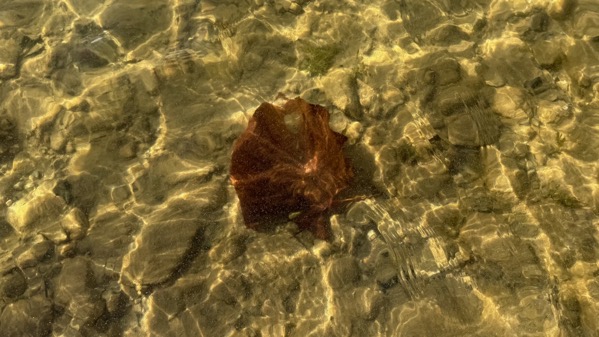 Later, I visited the beach, and spotted: leaf that had swimming lessons.